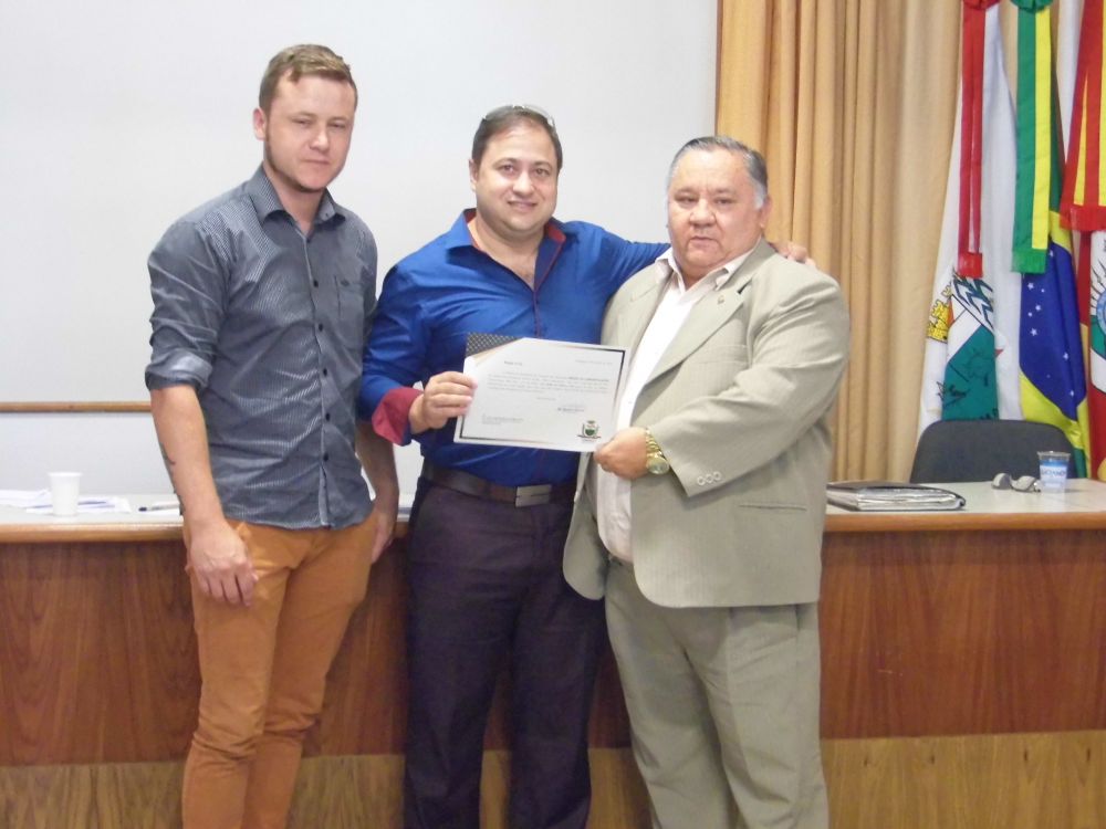 Ainda na Assembleia foi entregue pela Câmara de Vereadores de Camaquã, Moção de Congratulação ao Pastor Luis Cesar de Oliveira Leite, pelos seus 28 anos como presidente do COREDE Centro-Sul..
