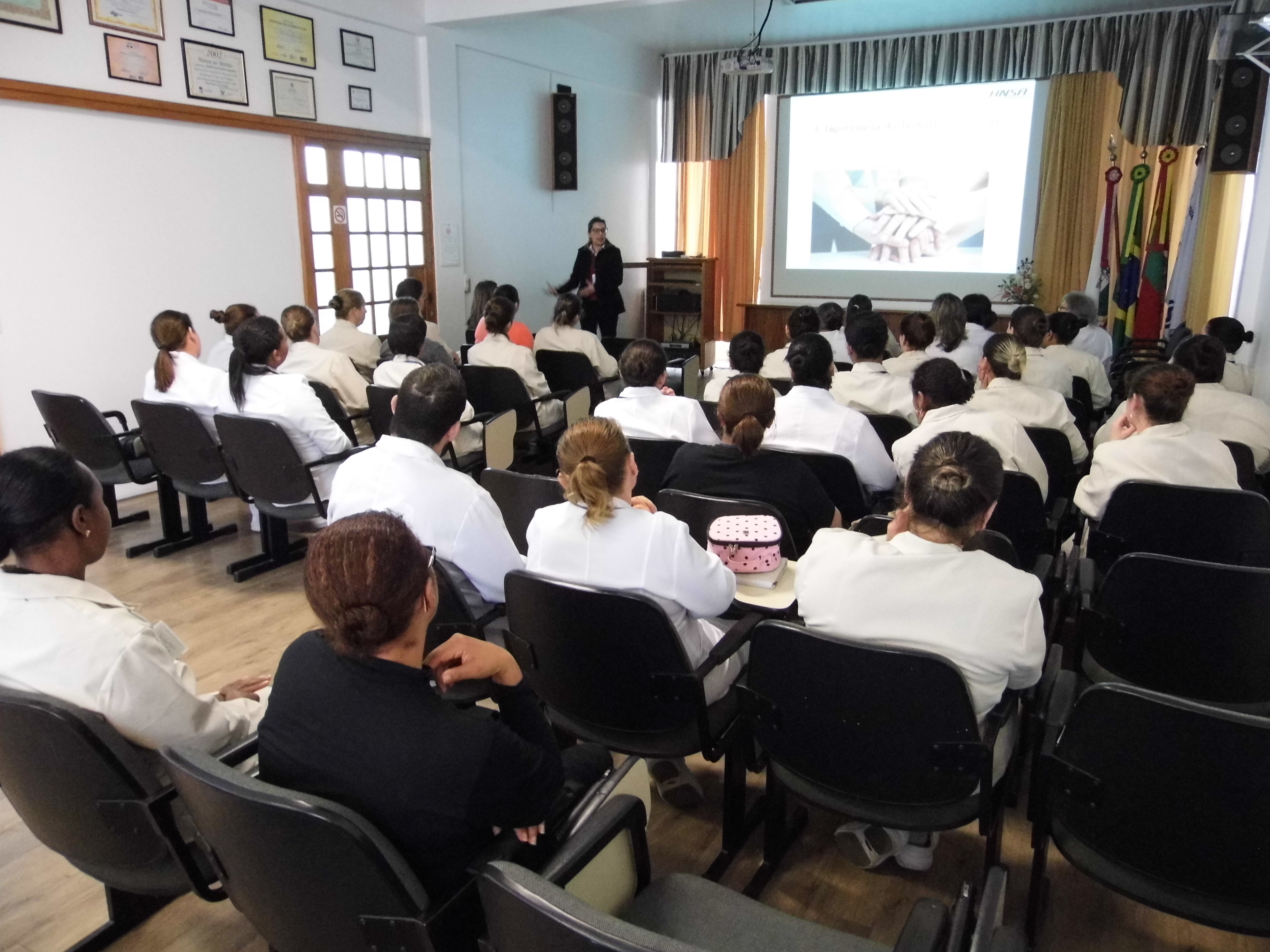 Com o objetivo de sempre melhor atender os seus clientes e trazer a harmonia ao ambiente de trabalho, o setor de Recursos Humanos realizou nesta tarde de quinta-feira (31), no anfiteatro do Hospital Nossa Senhora Aparecida, uma capacitação com os profissionais do setor de higienização, com o tema: "a importância do trabalho em equipe". A capacitação foi dirigida e apresentada pela Psicóloga Organizacional Fernanda Garcia Resende.